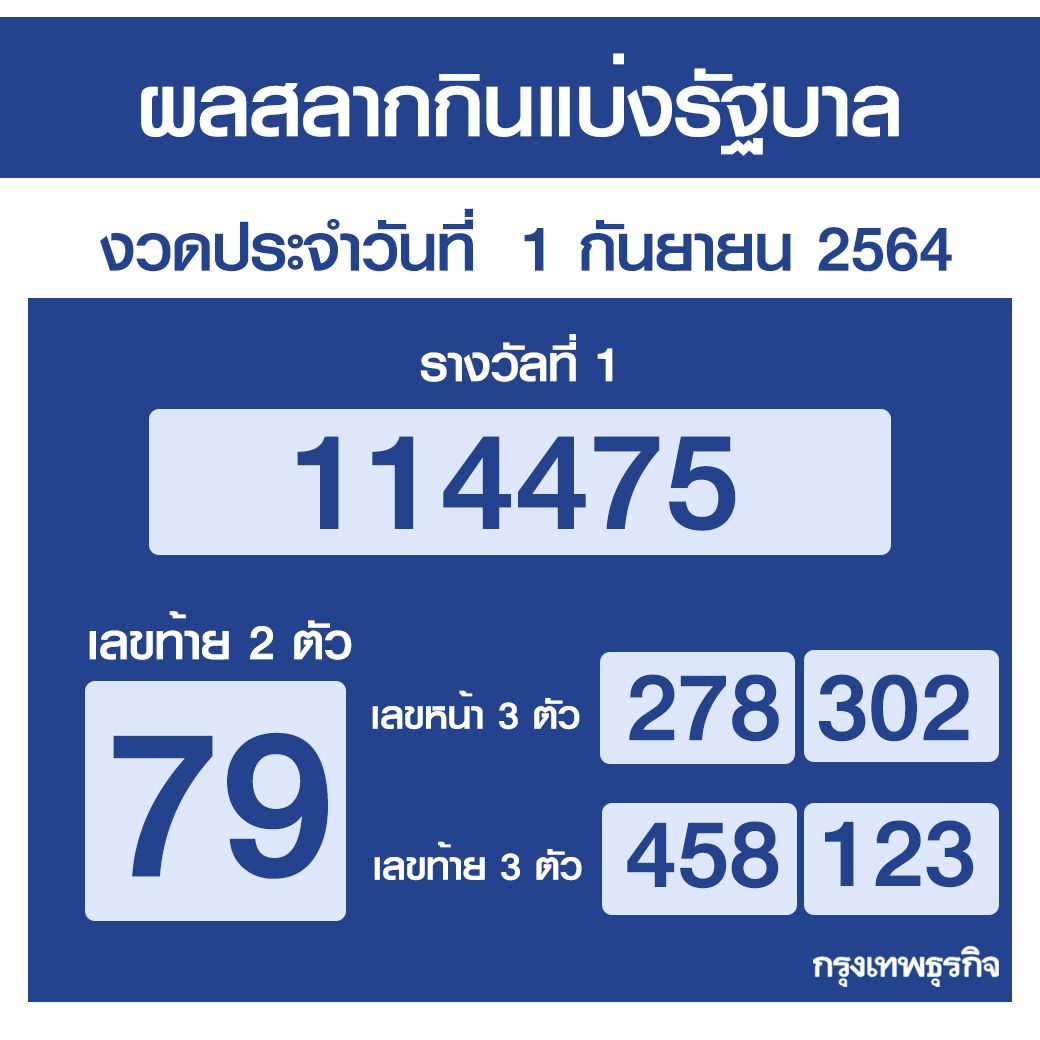 ผลสลากก นแบ งร ฐบาล งวดว นท 1 ก นยายน 2564 อ นโฟเควสท